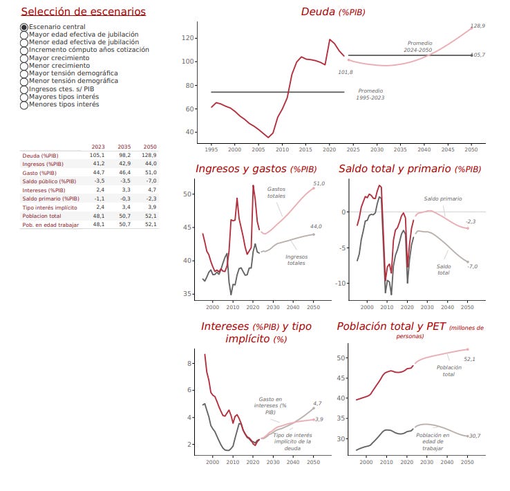 Traducción: O subimos impuestos, recortamos pensiones, o dejamos que la deuda explote. Las tres opciones son un suicidio político.